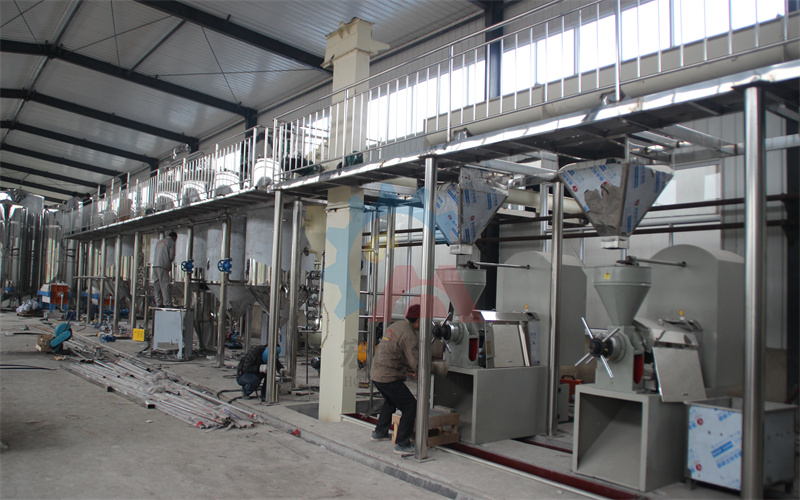 隨著消費(fèi)水平的提高,人們對(duì)于食物也不僅僅只考慮味道,對(duì)于健康更是尤為注重。近些年來(lái)隨著健康飲食逐漸興起,一些小眾油脂逐漸出現(xiàn)在大眾視野,牡丹籽油就是其中一種。牡丹籽不僅產(chǎn)量高、而且抗性強(qiáng)、適應(yīng)性廣,發(fā)展?jié)摿Υ螅悄壳拔覈?guó)可大面積推廣的高亞麻酸木本油料作物。 牡丹籽油加工工藝流程和常見油脂大致相同,常見油脂有壓榨和浸出兩種生產(chǎn)工藝,但作為小品種食用油之一,牡丹籽原料生長(zhǎng)范圍、播種面積不如常見的花生、菜籽等原料播種面積廣、產(chǎn)量大,因此不適于浸出工藝生產(chǎn)。宏德機(jī)械建議牡丹籽油的加工還是選擇壓榨工藝來(lái)生產(chǎn),主要原因有兩點(diǎn): 一是浸出設(shè)備投資成本高,機(jī)械化程度高,需要連續(xù)化生產(chǎn),適合大宗油料生產(chǎn),效率高,產(chǎn)量大。而壓榨生產(chǎn)線設(shè)備可以根據(jù)客戶的產(chǎn)量配置設(shè)備的數(shù)量,有利于成本的節(jié)約。 二是壓榨生產(chǎn)線是采用物理壓榨工藝,生產(chǎn)出的牡丹籽油保留了原料的營(yíng)養(yǎng)和風(fēng)味,消費(fèi)者的認(rèn)可程度更高。 牡丹籽油壓榨生產(chǎn)線提取油脂的主要設(shè)備有榨油機(jī)和精煉設(shè)備,壓榨工藝分為冷榨和熱榨兩種,具體選擇哪種工藝還是要由客戶來(lái)選擇。精煉設(shè)備則是保證成品牡丹籽油能達(dá)到食用油標(biāo)準(zhǔn),保證牡丹籽油品質(zhì)的重要設(shè)備。 下面是宏德客戶牡丹籽油壓榨精煉生產(chǎn)線的安裝現(xiàn)場(chǎng)圖片: 牡丹籽的清理采用振動(dòng)清理篩和比重去石機(jī),清理后的牡丹籽由絞龍送至下個(gè)車間。 清理后的牡丹籽進(jìn)行脫殼、蒸炒后送入榨油機(jī)壓榨出油。 壓榨得到的牡丹籽毛油在精煉設(shè)備中進(jìn)行脫膠、脫酸、脫色、脫臭處理,再送入脫蠟設(shè)備進(jìn)行低溫脫蠟,之后經(jīng)過板框過濾機(jī)過濾后的牡丹籽油就是一級(jí)牡丹籽油。